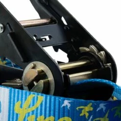 - Platte tape, speciaal ontworpen voor slackline (trampoline-effect). Doorlopende opdruk voor betere grip en oriëntatie op de slackline. De ergonomisch geoptimaliseerde kunststof handgreep van de ratel zorgt voor comfortabel en efficiënt spannen.